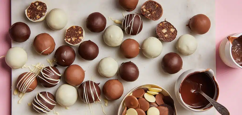 כדורי שוקולד מצופים שוקולד מריר, חלב ולבן