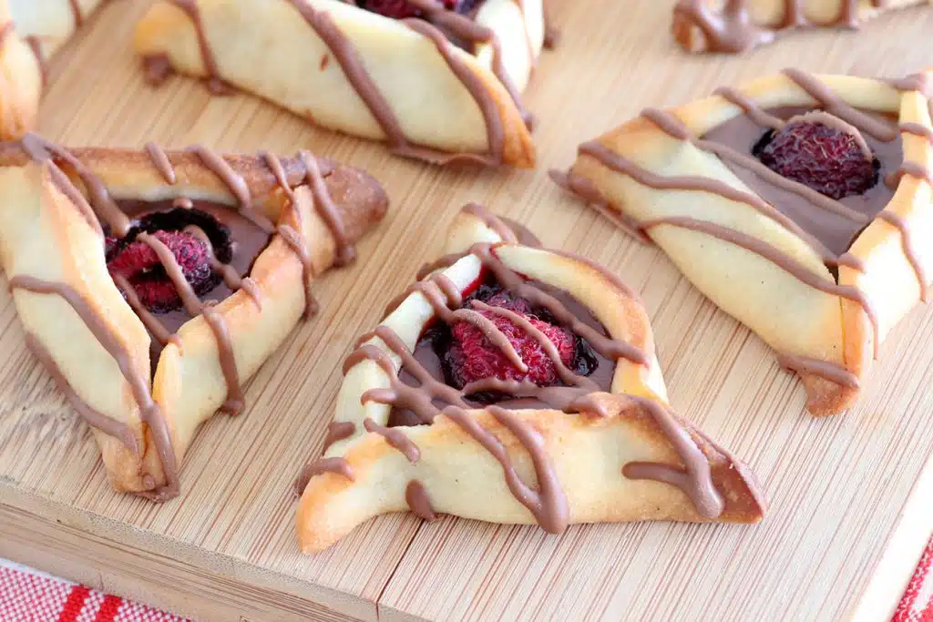 שילוב טעים של מתוק וחמצמץ באוזני המן ממכרות במיוחד – אוזני המן במילוי שוקולד ופטל עם בצק פריך ונמס בפה עם מלית שוקולד מטריפה מנוקדת בפטל עסיסי.