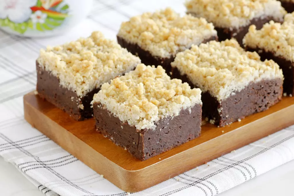 בראוניז שוקולד עשירים במיוחד ונמסים בפה עם שכבת פירורים קראנצ'ית בחלק העליון. קינוח מעולה ומהיר לאירוח או פינוק טעים ושוקולדי ליד הקפה.