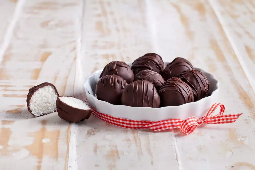 - טובלים את כדורי הקוקוס בקרם השוקולד, מניחים חזרה בקופסא או בצלחת הגשה ומאחסנים במקרר לשעה. מגישים קר.