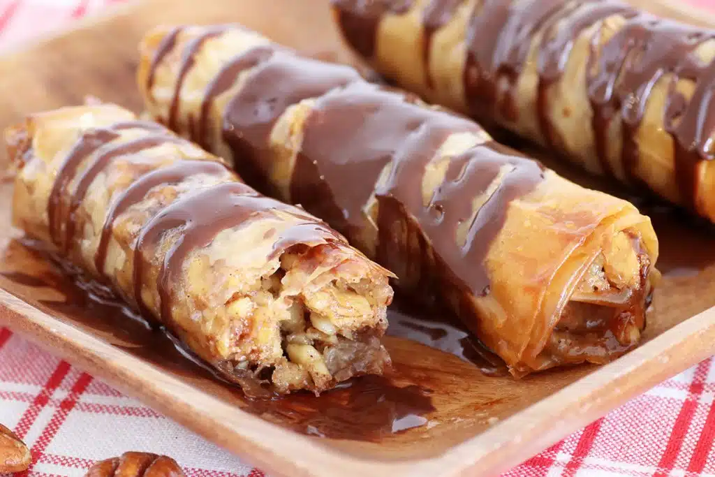 סיגרים של בקלאווה עם אגוזים ברוטב שוקולד ודבש