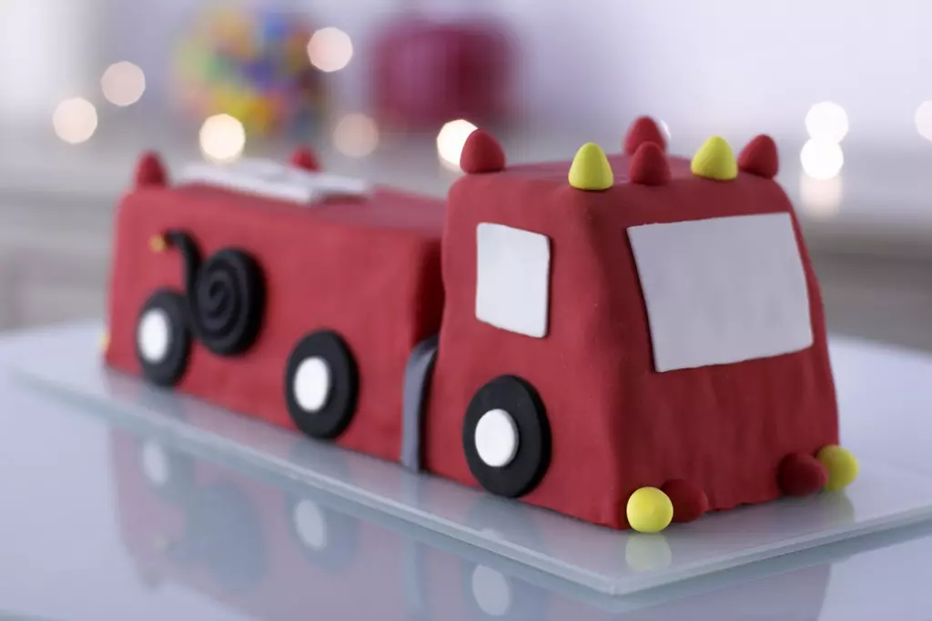 - מקשטים בשאריות בצק סוכר בצבעים אחרים ויוצרים אלמנטים קישוטיים כמו צינור וגלגלים.