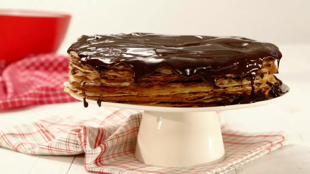 - הרכבה:מניחים קרפ על צלחת ההגשה ומורחים עליו שכבה דקה של גנאש מוקצף. חוזרים על הפעולה עם כל הקרפים. מצפים בגנאש הנוזלי.
