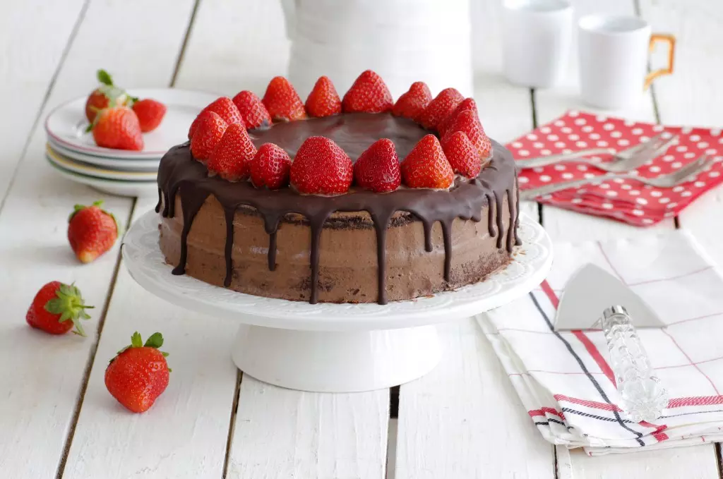 עוגת שכבות שוקולד ותותים
