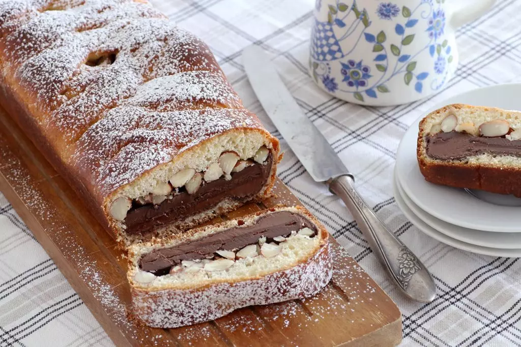 עוגת שמרים במילוי טבלת שוקולד ואגוזים שלמים