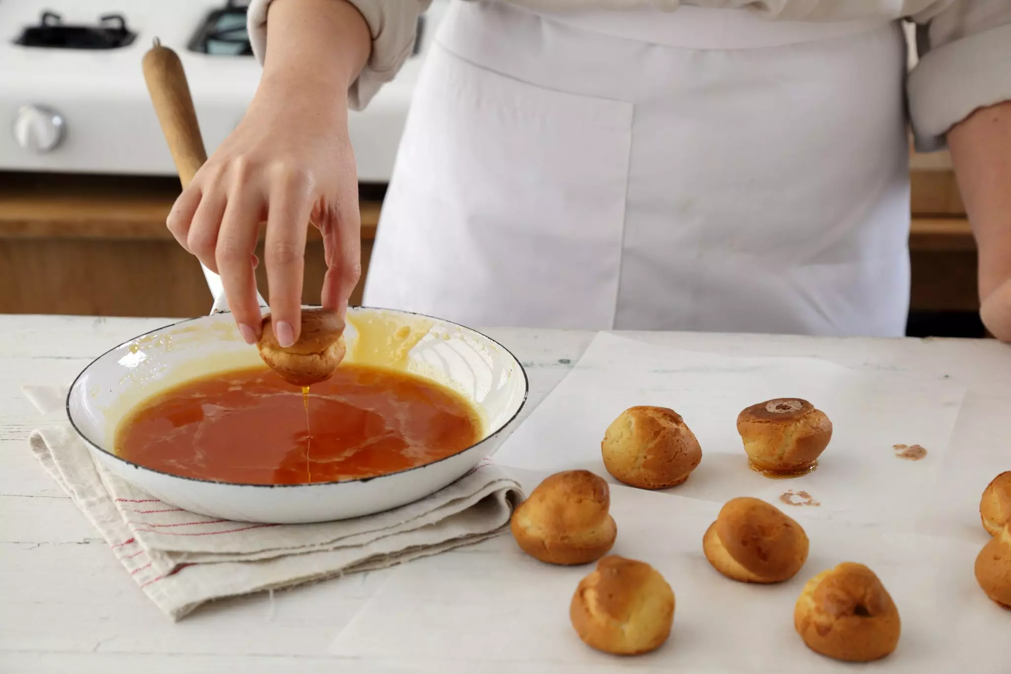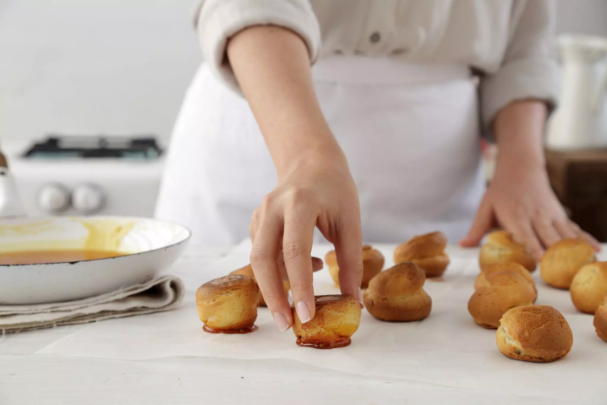 למרות שפחזניות זוכות בשנים האחרונות לעדנה מחודשת, הן קצת מרגישות מיושנות ביחס לקינוחים אחרים. זה לא בגלל שהן לא טעימות, אלא בגלל זכרונות ילדות משנות ה-80 עם פחזניות פרווה שצנחו באפייה במילוי קצפת צמחית. הפחזניות הבאות מחזירות להן את הכבוד הראוי. פחזניות בדיוק כמו שהן אמורות להיות, ממולאות בקרם שוקולד עשיר מוקצף וטבולות בקרמל שיוצר להן
