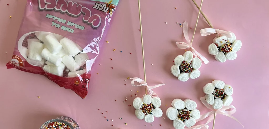 פרחי מרשמלו מתוקים שכיף להכין וכיף לקבל – פעילות כיפית ופשוטה לעשות עם הילדים בחופש הגדול והם גם תוספת מושלמת לכל שולחן יום הולדת או חגיגה אחרת.